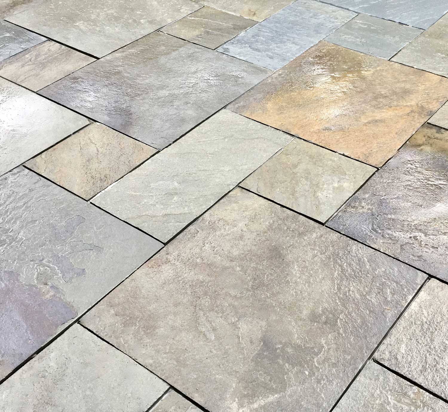 A renovation transformed this outdoor room into a place for gardening, relaxation and dining with just enough lawn for the kids to play with the family dog. A sitting area with benches framing either end of a small central lawn draws visitors into the garden and provides extra seating during gatherings or a spot for a quiet moment. The semi-formal layout of the garden and natural stone patio, reflect the traditional Tudor architecture style while colorful summer blooming perennials keep the vibe relaxed. A pair of the Little Gem Southern Magnolia(Magnolia grandiflora ‘Little Gem’) and a focal pot planted with a sculpted Variegated Dwarf Boxwood(Buxus sempervirens ‘Variegata’) provide structure during all seasons. Espalier camellias and classical symmetrical bow to the traditional roots of this grand old neighborhood.